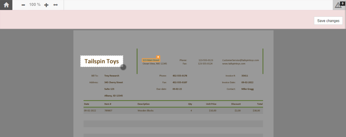 - Once you have selected the chosen identifiers, click Save changes. This button is found in the upper right of the document viewer.